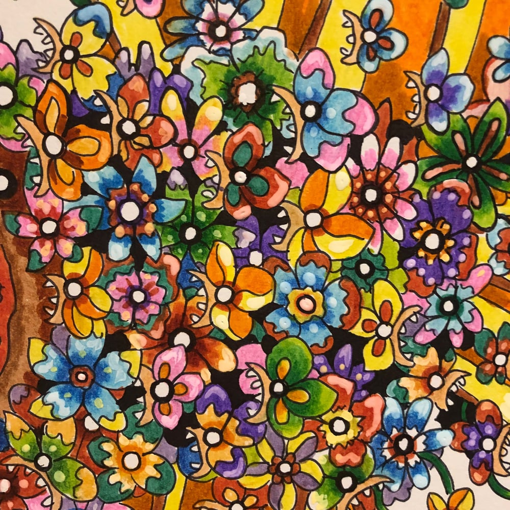 This is a one of a kind original 10x10 inch acrylic and ink painting on paper.