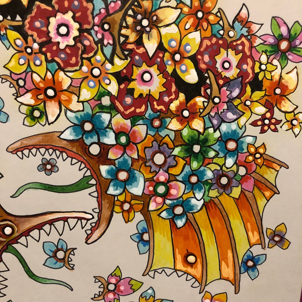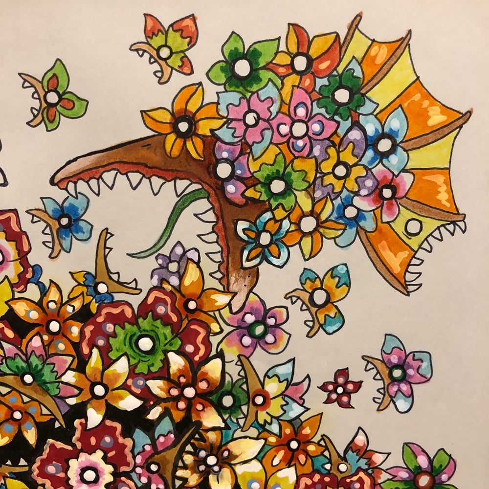 This is a one of a kind 14 inch by 11 inch acrylic and ink painting on paper.